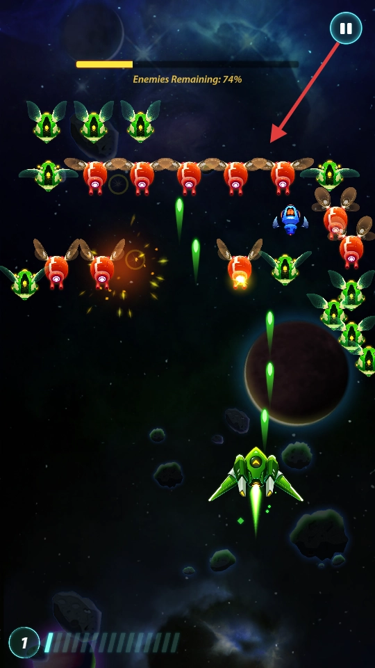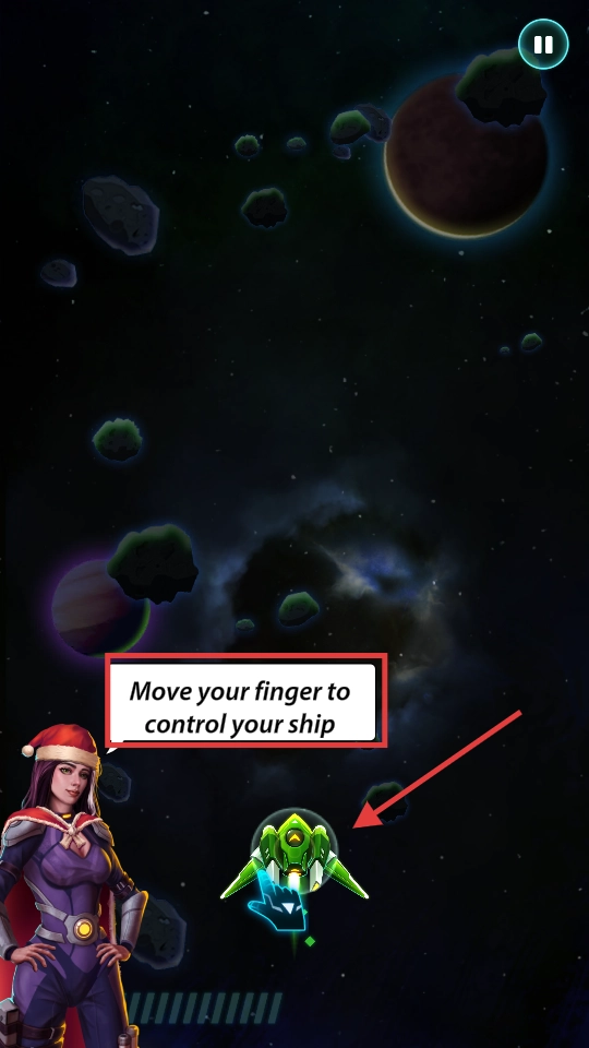 1、用手指滑动操控【战机】移动,在星际空间调整位置,为战斗或躲避障碍做准备。