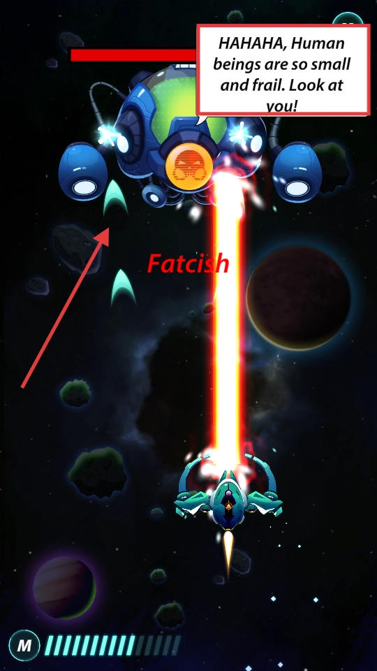 4、躲避【Fatcish】的光束攻击,观察弹幕规律,找准时机反击,击败这一强大敌人。