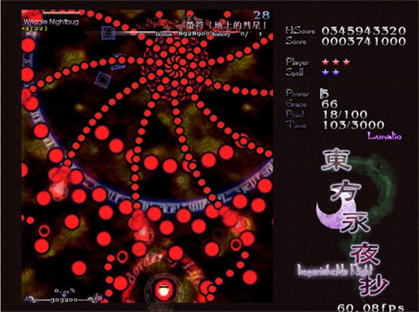 东方永夜抄游戏是一款由上海爱丽丝幻乐团制作的一款STG设计游戏,在这款游戏之中主要是由幻想乡作为背景,因为月球上逃脱的公主蓬莱山辉夜以及她的老师八意永琳为了躲避月面的追捕,从而制造的一次永夜异变。东方永夜抄游戏之中你需要想办法在游戏之中躲避不同敌人的攻击并且展开属于自己的进攻,选择不同的自机在游戏之中进行玩耍,感受丰富多样的关卡设计以及boss战吧。