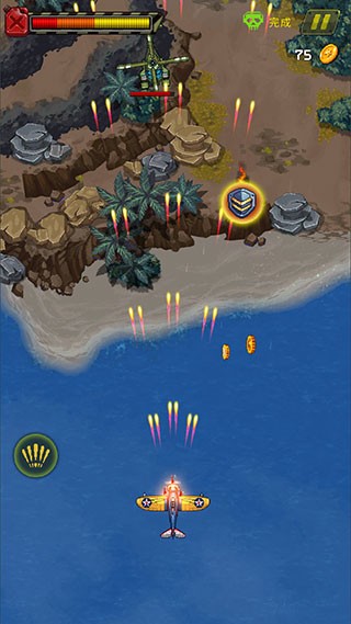 街机射击1945最新版是一款经典的纵向卷轴飞行射击游戏,玩家通过操控战机,击败敌机,收集能量升级武器,最终摧毁敌方基地,保卫世界和平,体验最纯粹、最刺激的弹幕射击乐趣。