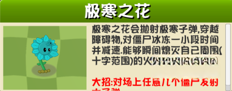 5. 极寒之花:能穿透障碍物对僵尸展开攻击,使僵尸行动减速,同时还能扑灭周围的火焰。