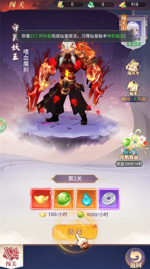 2、挑战强大的妖王,成功闯关后你将解锁更多炫酷功能,体验无限可能!