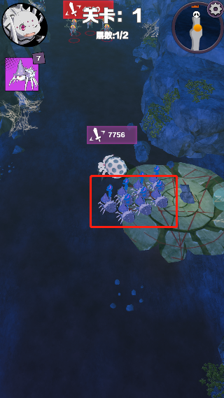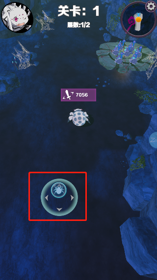 战斗中玩家通过点触屏幕唤出移动遥感操作小蜘蛛进行移动