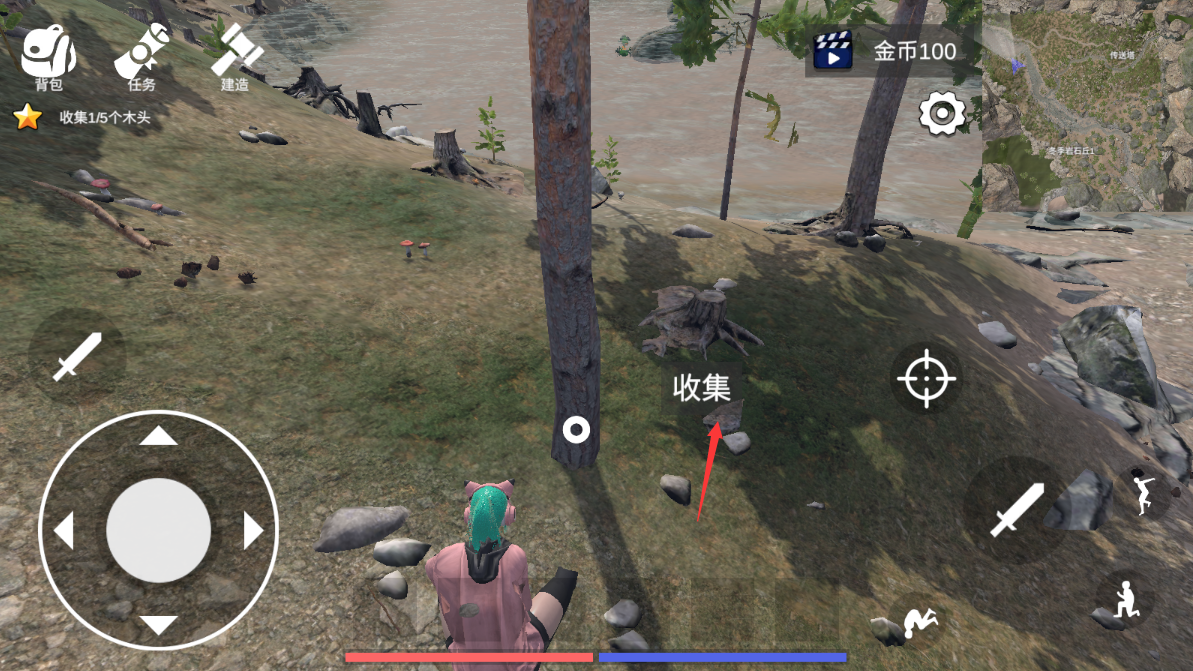 1、进入幼兽帕帕我们是没有任何武器的,因此需要收集材料制作;