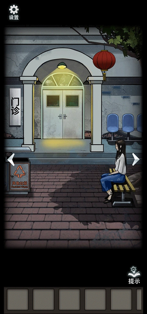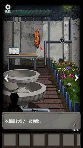 6、接着顺利来到精神病院,然而却被门锁拦住无法进入。四处打量一番后,在花坛处找到了弹珠,随后又在院子墙上环卫工的衣服里翻找出钥匙。