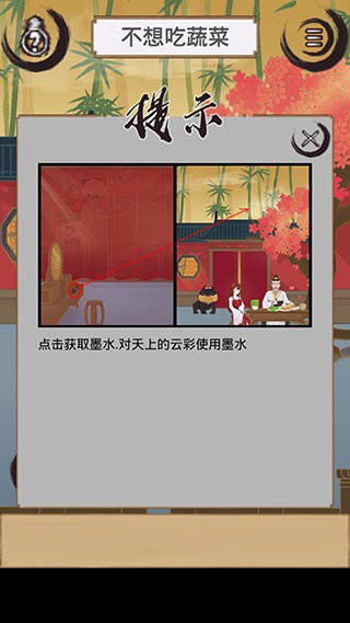 成就二:点击红色区域获取墨,随后将墨使用在天空方向。