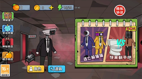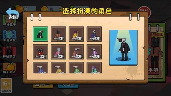 2、游戏设有幸运转盘、神秘商店、橘子商店等丰富玩法。不仅如此,玩家在游戏中有大量角色可供挑选,每个角色都具备独一无二的技能。而且,玩家只需观看视频,就能获取诸多道具。