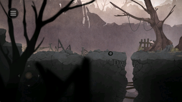2、抵达标有“drop”(坠落)字样的悬崖边缘时,需操控字母纵身跳下。