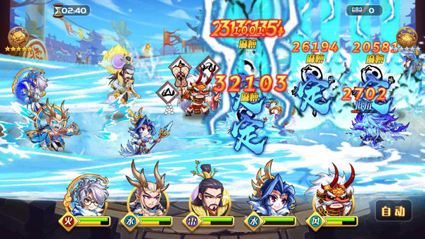游戏核心为卡牌收集、养成与自动战斗。玩家通过招募获取诸如Q版关羽、孙悟空等历史与神话英雄,并通过升级、进阶、装备和宝石系统强化队伍。战斗全程自动,策略重心在于战前的阵容搭配、站位安排以及英雄技能的Combo联动。丰富的PVE副本、PVP竞技场和公会合作玩法提供了多元化的挑战目标。
