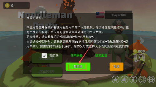 1. 同意条款:于游戏开始界面,点击“我同意”按键,即表示同意使用条款。