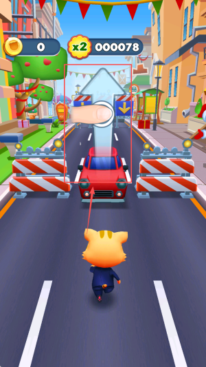 1、操控角色躲避障碍:操纵小动物角色在赛道上奔跑,当碰到障碍物时,要及时滑动屏幕来躲避,像向下滑动就能钻过矮栏,向上滑动则可跳过高墙。