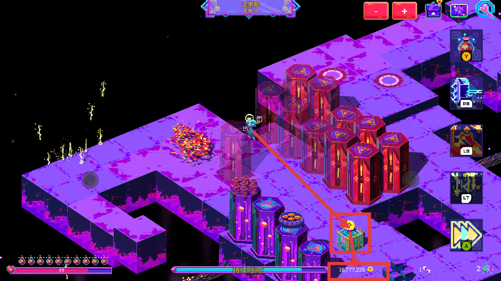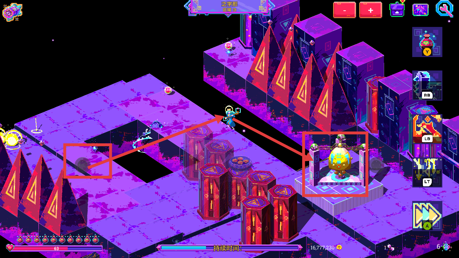 4、去往【之字形 - 区域3】的特殊设备处,接着展开探索,把金币积攒到【16,777,230】,推动【持续时间】的进展。