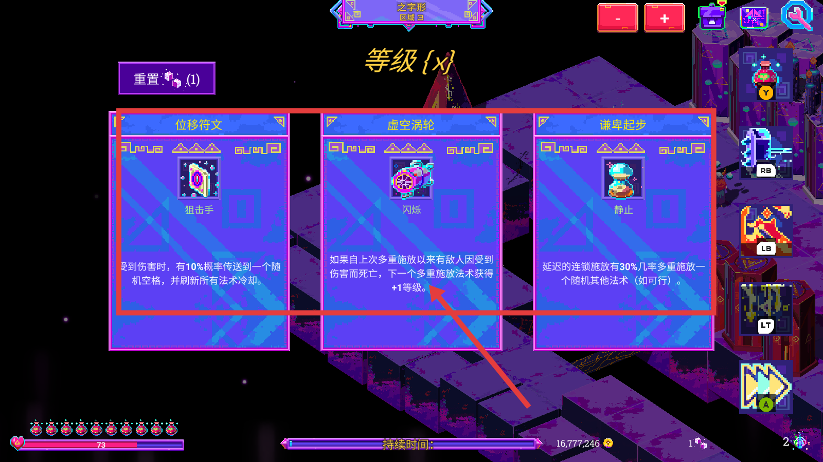 3、在进行升级操作时,选择【虚空涡轮】。借助敌人死亡这一契机,可让多重施法法术提升1个等级,从而增强自身战力,为探索提供有力帮助。