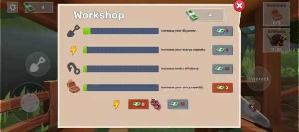 2、借助获取到的矿物与材料来升级你的工具,以此提升挖掘速度、增强力量或提高耐久度,进而解锁更深处的秘密区域。