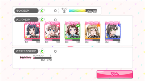 最后是经验值分配,LIVE 结束后能分别得到Rank、角色以及乐队的经验值,经验值的多寡取决于玩家所获得的分数评级。其中Rank 上升后LIVE Boost 会+3(即使满3 个时亦会突破上限),亦能解开主线故事,乐队等级上升后能解开乐队故事。
