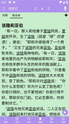 5、进行在线学习圣经,随时添加笔记或收藏夹。