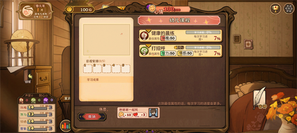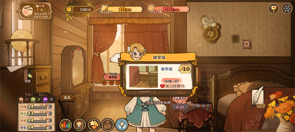 场景中的交互选项可以提高女儿属性不同选项消耗的行动力也不同。
