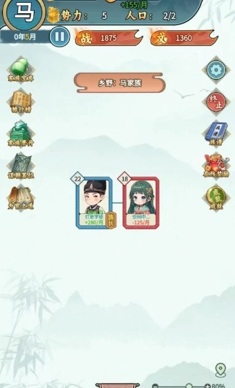 1、招募族人并分配适配岗位,处理好成员间的关系,保障家族和谐运转,逐步壮大势力。