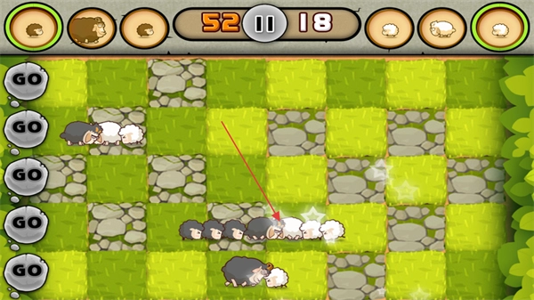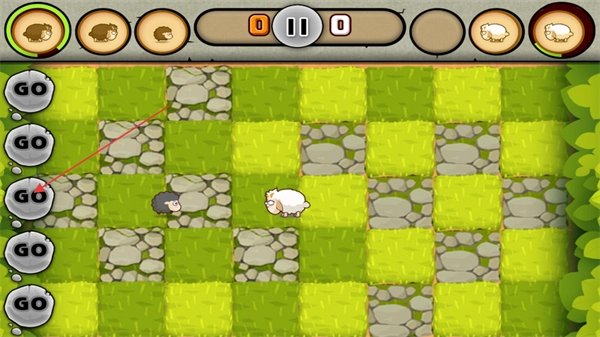 2、比赛开始后,点击不同道路上的“GO”按钮,就能让绵羊进入赛道。