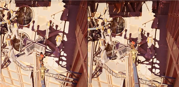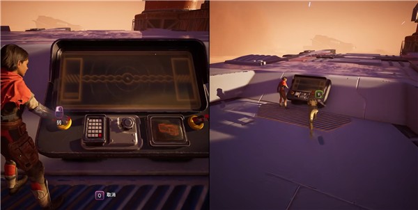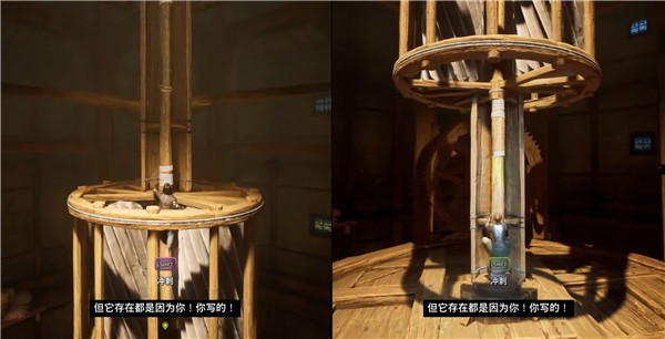 12、需要一个人进行机器交互把类似电池的东西拔出,电力风扇就会有个缺口,抓住时机从缺口处抓取对面绳索。