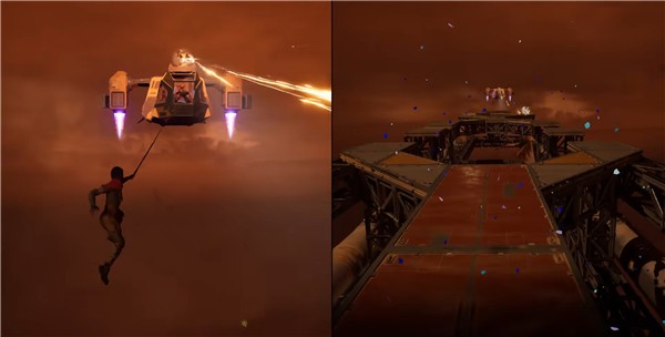 19、躲避飞行器扫射,并按住抓取将驾驶员干掉!(另一个队友同理),这样就会变成一人负责驾驶飞行器,一人负责使用武器扫射敌人。