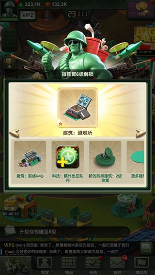 在《兵人大战》里,指挥部等级的提升会解锁更多功能与建筑,而且其他建筑的等级上限同样取决于指挥部;而提升指挥部等级需要耗费一定量的涂料和塑料;因此大家要多多收集涂料和塑料,以便升级建筑呀!
