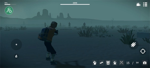 1、进入死亡荒地生存游戏,左边按钮用于操控角色移动,右边按钮则负责发起进攻。