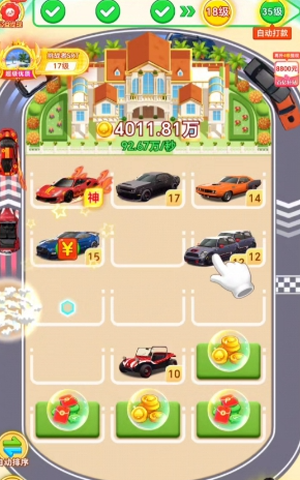 汽车种类丰富,玩家可以不断合成来解锁全新的汽车。