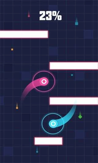 在太极跑酷的中文版游戏里,玩家操控一蓝一红两个小球,它们如同太极图案般旋转。轻点屏幕,就能使这两只小球变换旋转方向,通过持续切换方向来躲避障碍,直至抵达终点。该游戏设有闯关模式与无尽模式,玩家在这两种模式下皆能感受不一样的玩法乐趣。