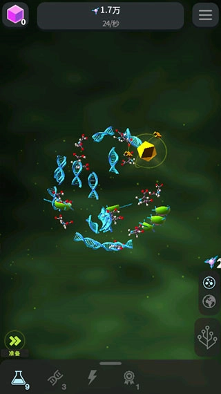 简易但具有科幻风格的低模画面,通过放置点击完成生物的进化。