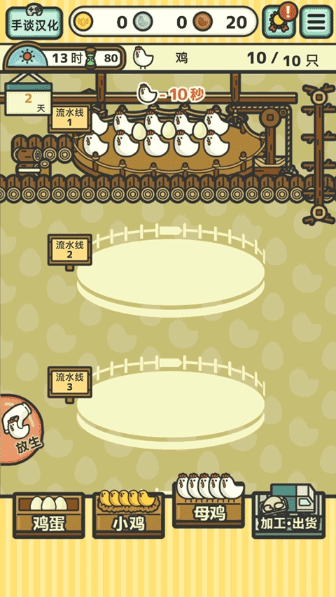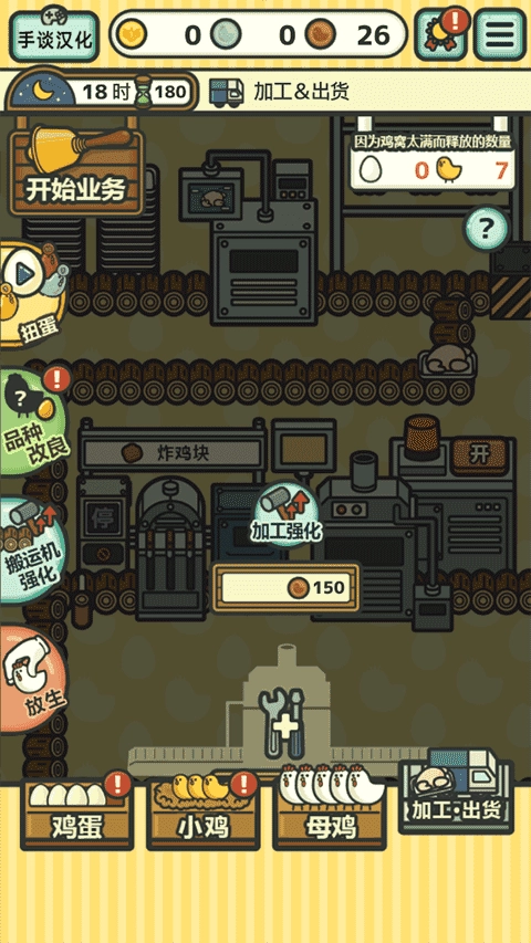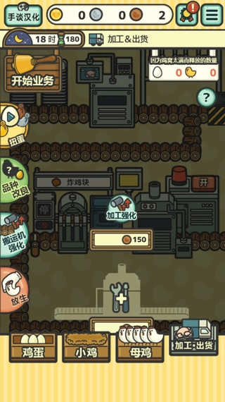 5、释放培养箱与加工装置,增添培养箱能够培育出更多小鸡,增添新的加工装置则可使报酬得以提高。