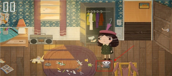 2、来到物品旁边后点击眼睛可以和物品进行互动;