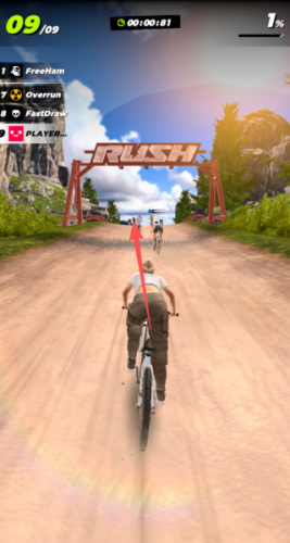 1、进入到游戏关卡中,我们需要长按控制着角色不断的向前,然后争取得到第一名。