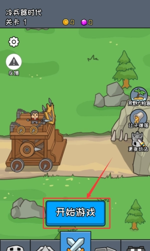 2、点击红框标注的蓝色开始游戏按钮,进入关卡1。