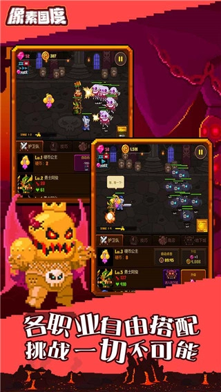 像素国度,这是一款以复古像素风格为主打的休闲策略冒险游戏,巧妙融合了点击操作、角色养成以及关卡挑战等多种元素。在游戏里,玩家要组建属于自己的冒险小队,深入魔王城,完成救出公主并击败魔王的使命。其操作十分简便,只需点击屏幕就能生成金币,而这些金币可用于招募勇者、升级队伍以及释放技能等。值得一提的是,该游戏属于挂机游戏,即便离线,也能自动获取收益,下次登录时,就能领取金币与素材。