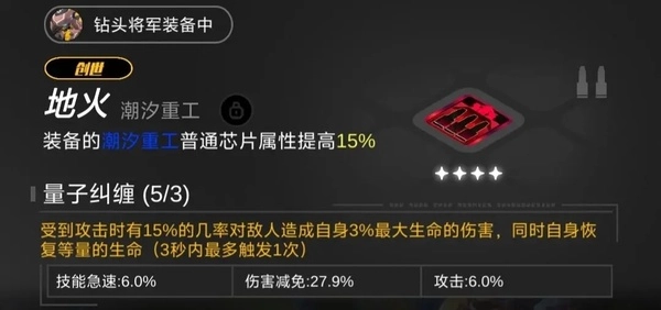 4、钻头将军坦,主要侧重于堆叠防御。芯片副词条方面,建议选择减伤属性(这是我从论坛了解到的)。生命方面有皮皮,所以坦不需要太多生命。我这只坦没有星级,是因为之前抽到的卡都分解拿去换芯片了,然而却没刷到红色芯片,黄色芯片也都用完了。