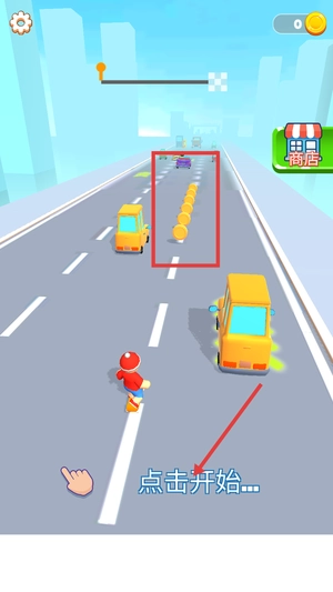 1. 点击“开始”按钮,进入游戏,操控角色在赛道上奔跑,收集沿途散落的金币以积累资源。