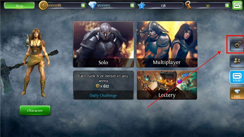 1、下载并打开地牢猎手3,点击屏幕右方的齿轮。