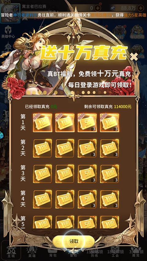 2、八日福利:每日签到送十万真充!