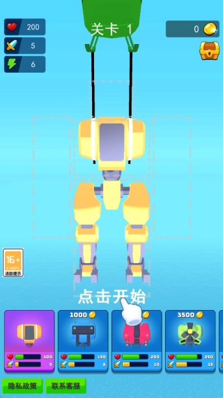 5. 只要完成关卡任务并抵达终点,就能顺利闯关。闯关所获得的金币奖励,可用于解锁更多零部件,对机甲战士进行强化。强化后的机甲战士,已准备好迎接新的挑战,快开启征程吧!