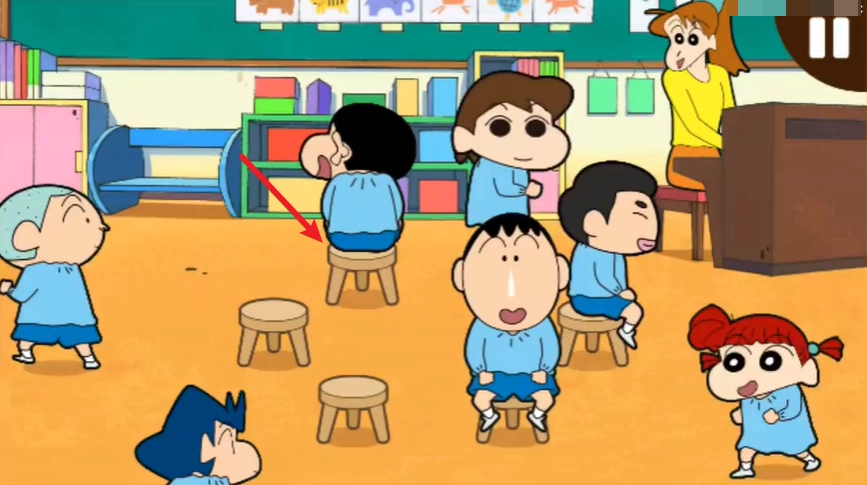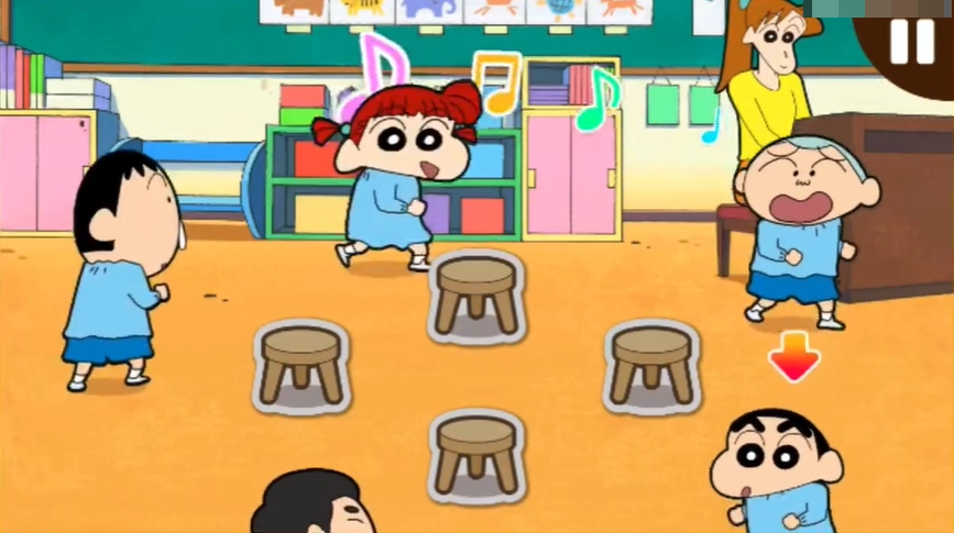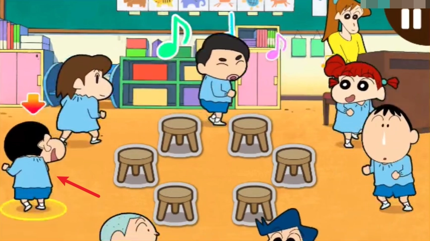 3、之后就可以正式开始了,小新和同学们就会随着音乐的节奏一起转圈。