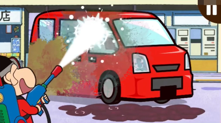 2、接着我们会经过一段小剧情,然后就开始挑战了,我们会看到许多被涂鸦覆盖的物品,需要利用工具清洗,例如这里就是小心利用喷水枪清洗汽车,点击对应位置即可进行清洗。