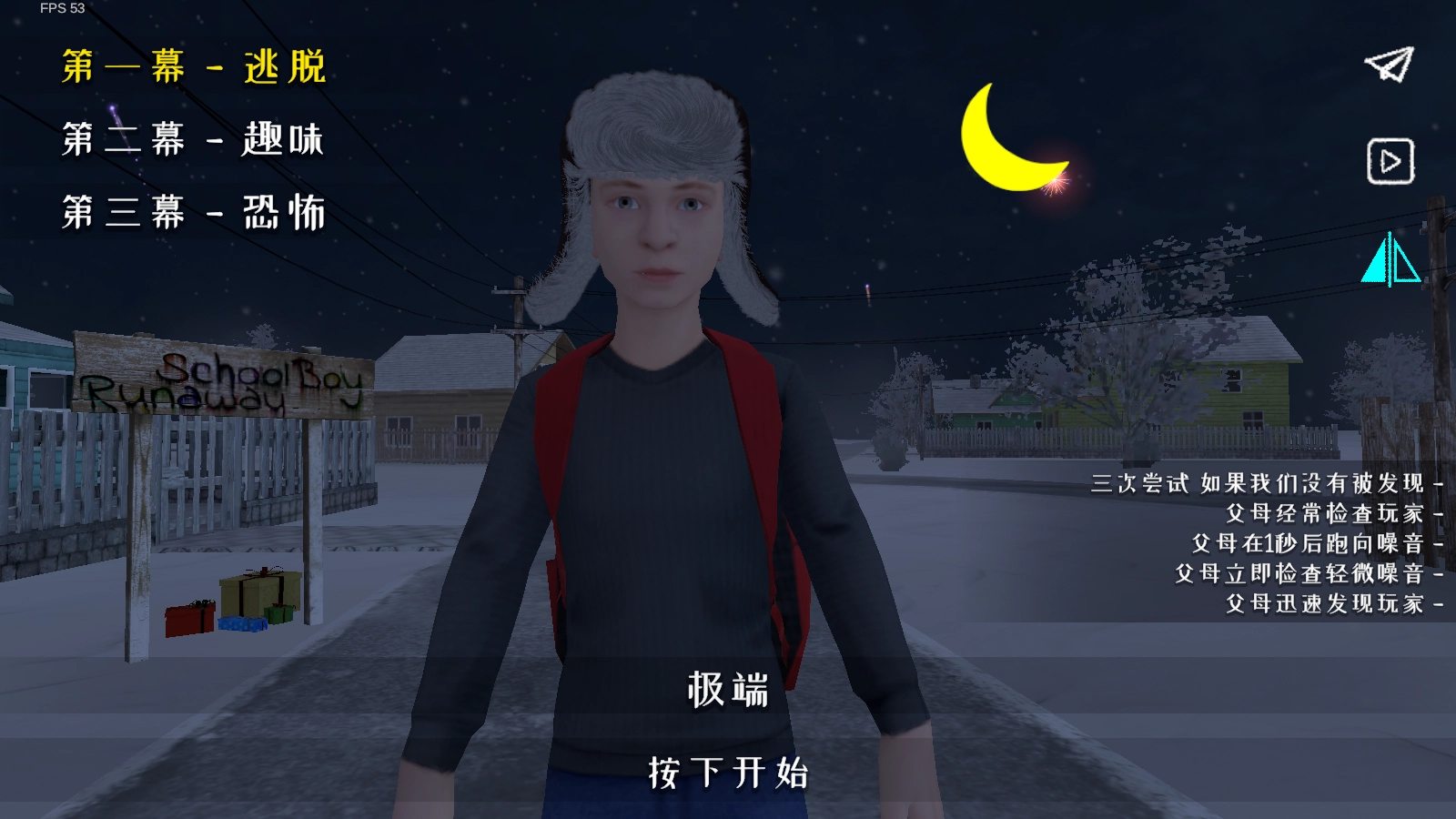 逃跑男孩正版,又名SchoolBoyRunaway或是逃离家暴,是一款第一人称的沉浸式密室解谜逃脱游戏。游戏中你是一名不爱学习的学生,想要逃离这个家,但是暴力的爸爸和时刻巡查的妈妈让你难以逃脱,所以你需要搜集道具,想尽一切办法吸引他们的注意力,找到机会顺利的逃出!