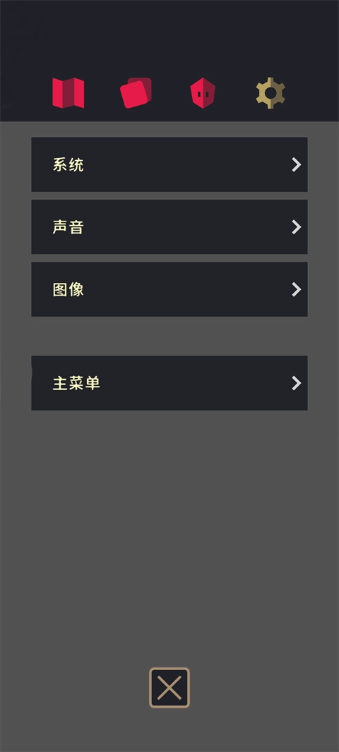 1、初次进入游戏会自动进入设置界面,玩家在此可以进行各种设置,比如声音、图像等,待设置完成后点击下方的×即可进入游戏