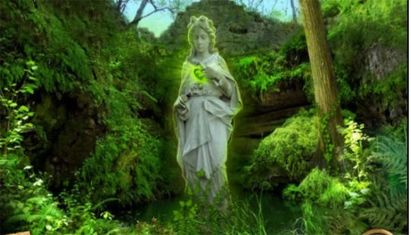 4、在场景4中,将绿色的心形石头放入雕像中,并按下按钮,将季节转换为春天。