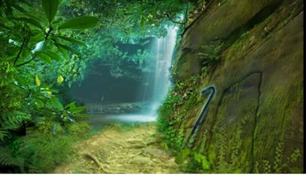 19、来到场景29,用锤子敲碎瀑布,进入场景34,依照记录的图形解开墙壁上的谜题,打开场景37的石门。