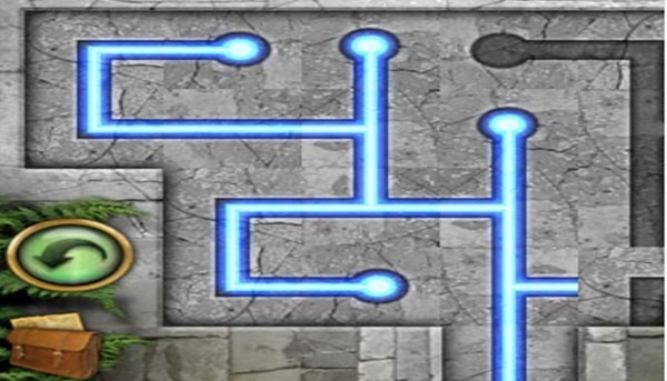 7、来到场景14将缺失的地砖补上,点击发光的地砖会有一个小游戏,连通所有管道可以在坑里得到一个连通齿轮转动的绳子,我们来到场景24,将绳子放上去,打开场景28。
