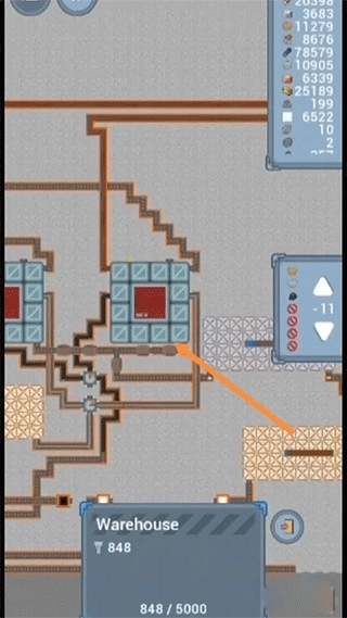 2、等解锁大仓库后,尽快解锁,就要考虑仓储布局了,尤其是出入方向,初期大仓库建议放在中间位置,方便各种资源汇合后再分类传输,另外用好垃圾桶,在资源出量快的传送带都可以放几个垃圾桶,存储量很大,又不容易堵路。附图漏斗,垃圾桶用法