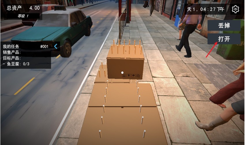 物品购买成功后,系统将安排配送,待货物送达门前,点击拾取即可将其拆封并放置在指定区域