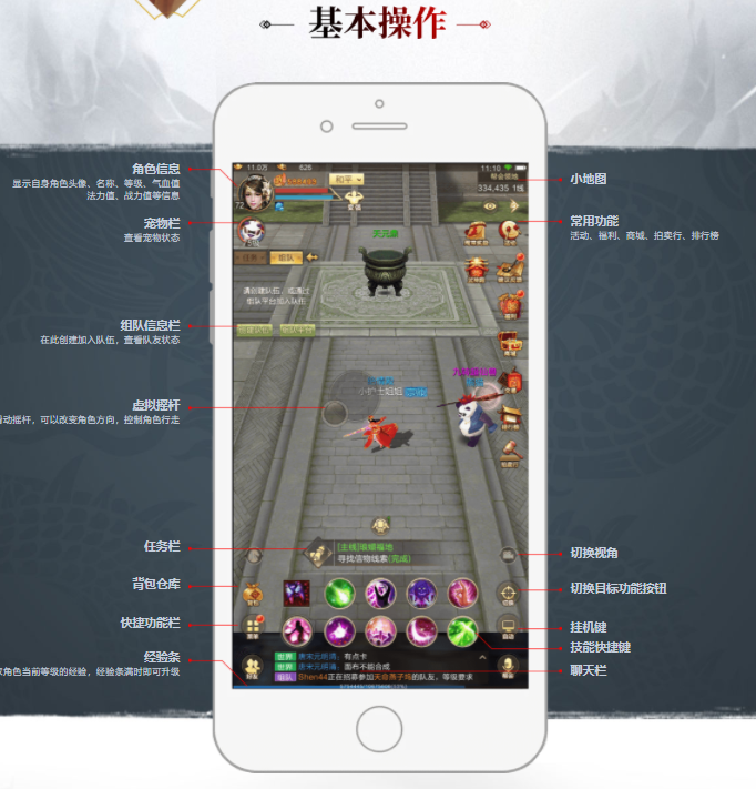 在帮会战、领地争夺等大型团战中,逍遥的定位是 【后排法术炮台】;和 【控场大师】。